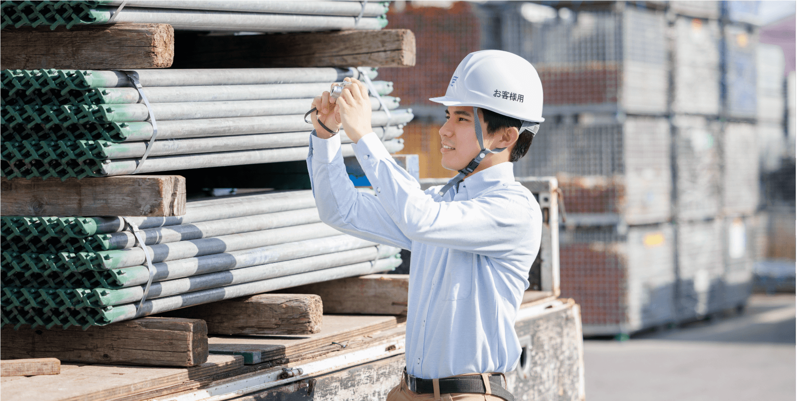 一方、機材センター職は当社が保有する足場資材を管理し、工事日に間違いなく現場へ届ける裏方の要です。センターに入庫した資材を点検・メンテナンスし、在庫をシステムで正確に管理しながら、各現場のスケジュールに合わせて出庫準備と配送手配を行います。もし資材が不足したり状態が悪かったりすると現場が止まってしまうため、正確さと効率の追求が欠かせません。作業は地道ですが、自分の段取り一つで現場が安全かつ予定どおり動くことを実感でき、チームを支えている誇りを感じられる仕事です。